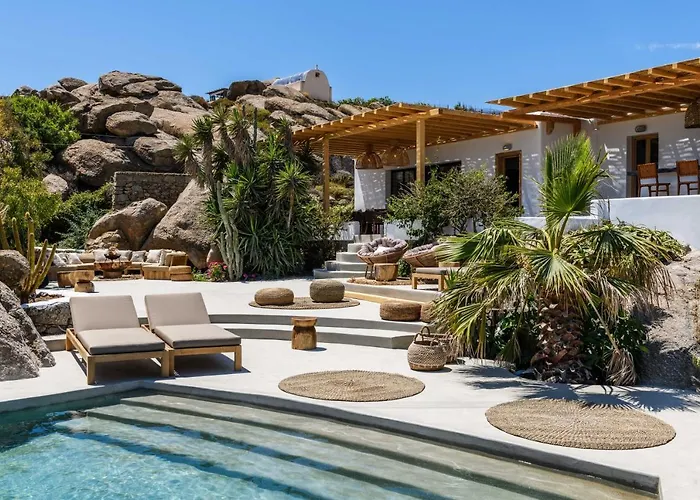 Η βίλα απέχει 5 χλμ. από το αεροδρόμιο Κρατικός Μυκόνου και 10 λεπτά με αυτοκίνητο από σημεία πολιτιστικού ενδιαφέροντος, όπως Αρχαιολογικό Μουσείο Μυκόνου. Αυτή η βίλα επίσης παρέχει πρόσβαση σε θρησκευτικούς τόπους, όπως η Εκκλησία της Παναγίας της Παραπορτιανής, που βρίσκεται σε απόσταση 3,1 χλμ.